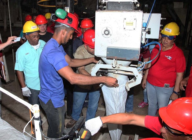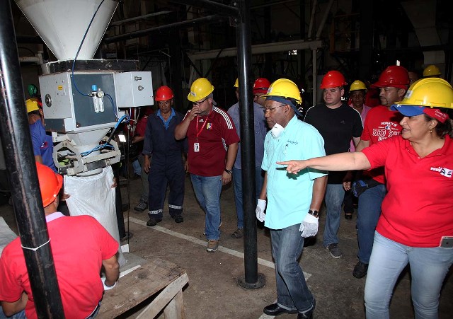 En su recorrido por la plata el vicepresidente Istúriz y la gobernadora Santaella observan la operatividad de las maquinarias. (Foto: Lilian de Moya)